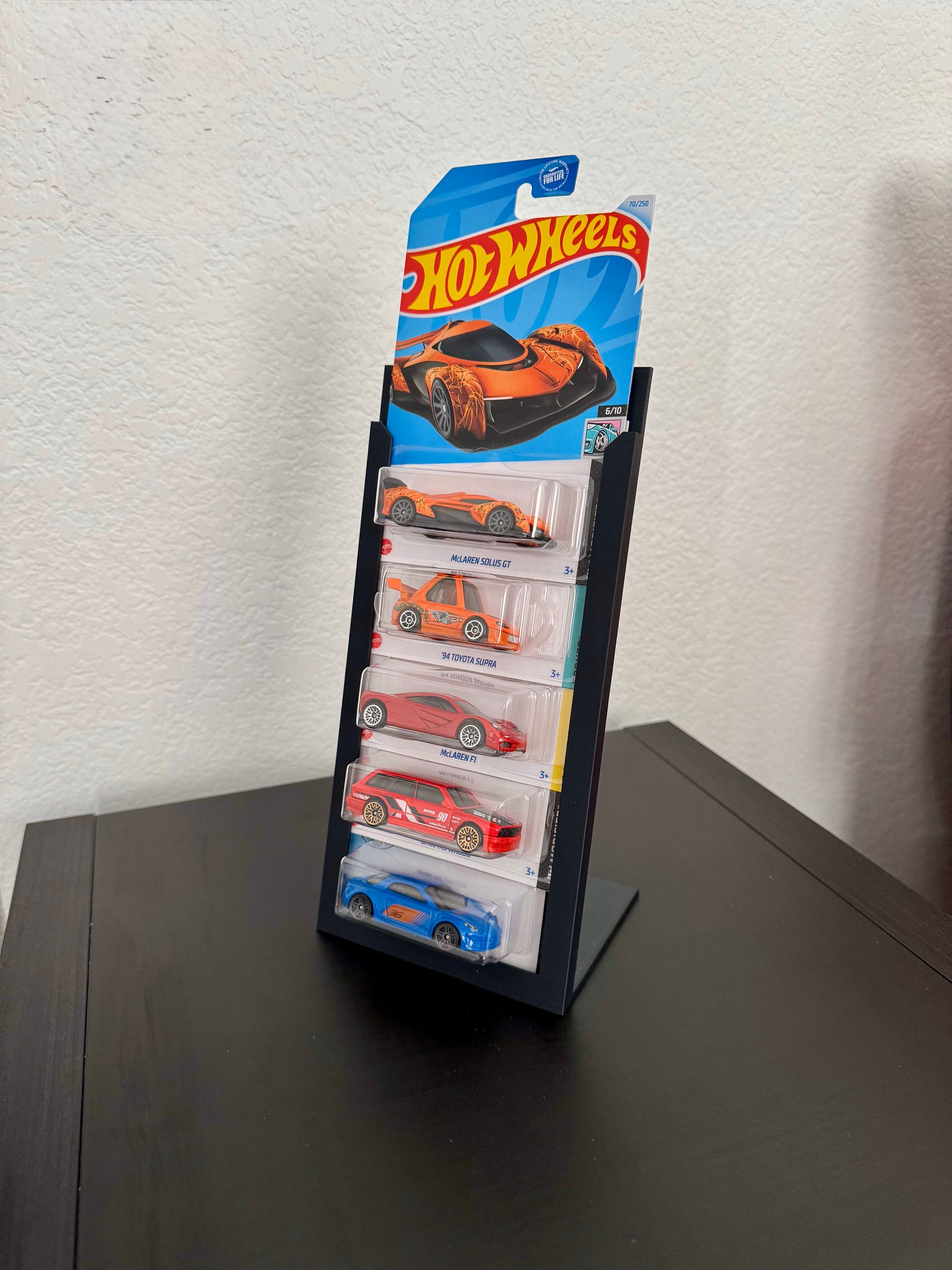 The 5 Car Display Stand is an elegant way to show off your Hot Wheels or Matchbox cars. It looks great on a desk, shelf, or dresser.