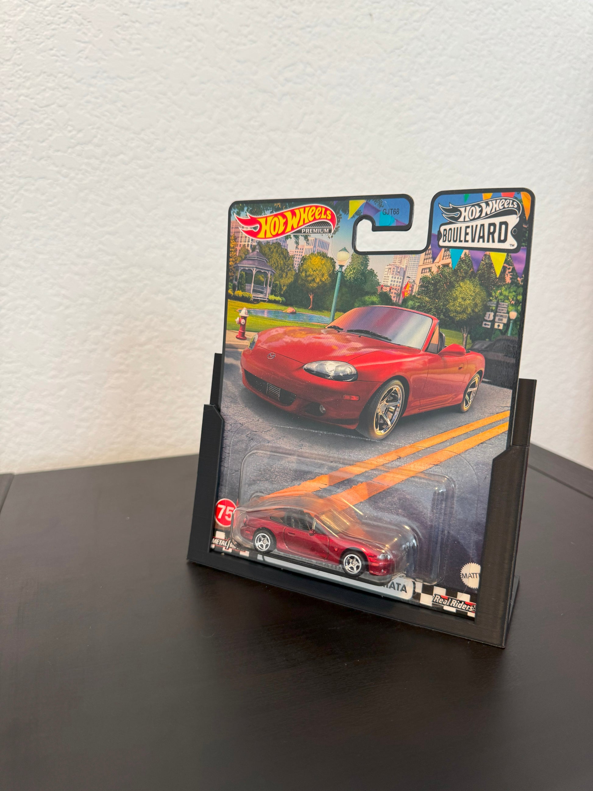 The Single Car Display Stand is an elegant way to show off your premium Hot Wheels cars. It looks great on a desk, shelf, or dresser.